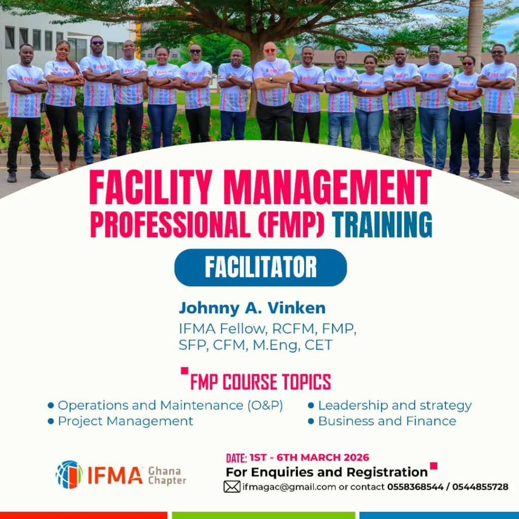 IFMA Ghana is pleased to announce the Facility Management Professional (FMP) Training, scheduled to take place from 1st to 6th March 2026. The Facility Management Professional (FMP) is an internationally recognized credential designed to build the practical knowledge and core competencies required for effective and value-driven facilities management. This intensive training programme will be facilitated […]